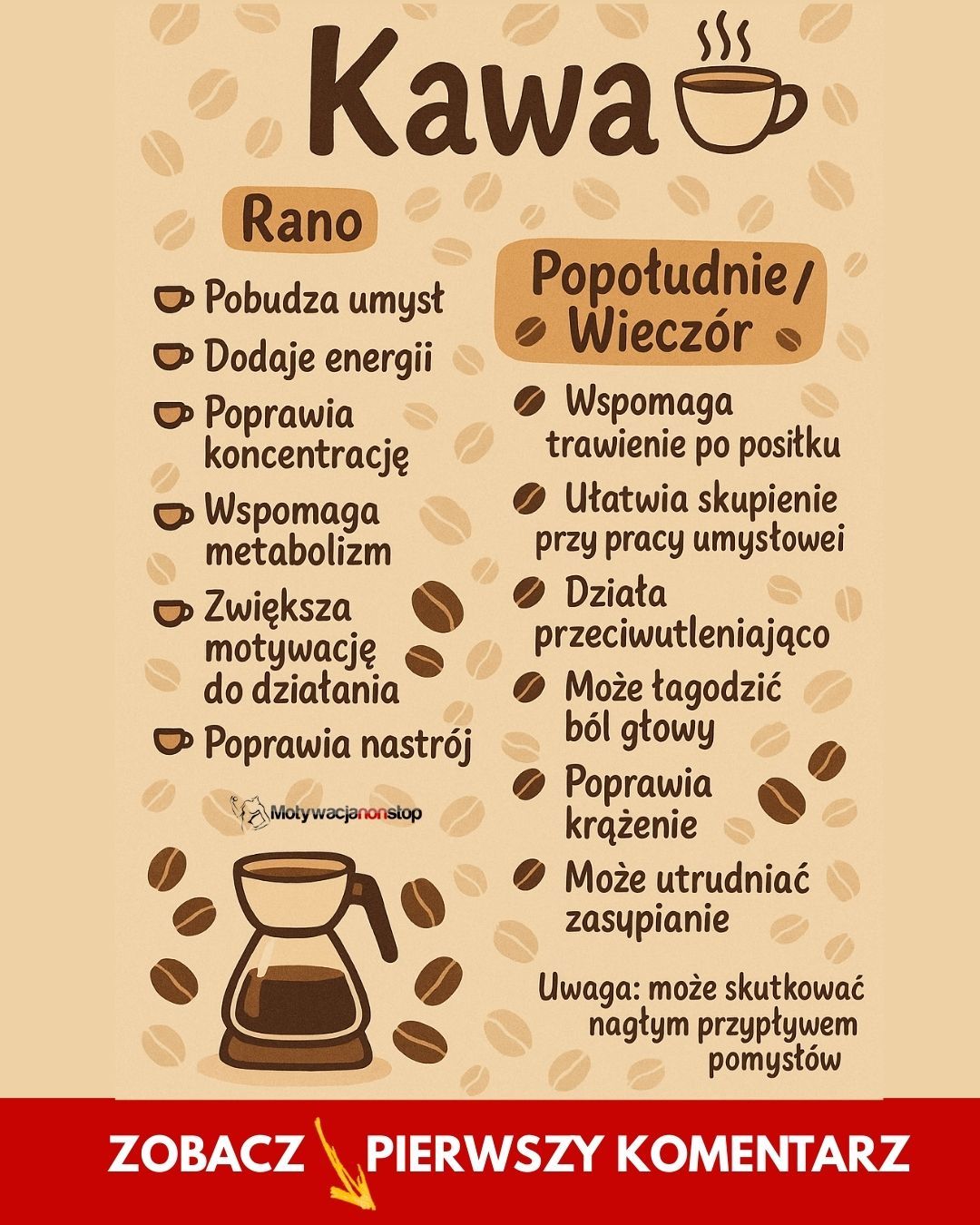 W końcu nadszedł długo wyczekiwany koniec pracy i powrót do domu. Jedyne o czym myślisz, to kanapa i pełen relaks. Jednak przed wyjściem jeszcze pozwalasz sobie na małe espresso i proszę…w cudowny sposób po dotarciu do domu ożyłeś do tego stopnia, że zamiast o kanapie zaczynasz myśleć o treningu....