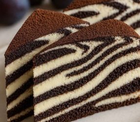 Sernik zebra Składniki: Masa serowa: 1 kg twarogu sernikowego (trzykrotnie mielony lub z wiaderka, dobrej jakości) 5 jajek (w temp. pokojowej) 200 g cukru 2 łyżeczki cukru waniliowego 100 g masła (roztopionego, przestudzonego) 2 budynie waniliowe (po 40 g, bez cukru) 100 ml mleka 3 łyżki kakao naturalnego (do masy kakaowej) Dodatkowo: kakao do posypania wierzchu po upieczeniu (opcjonalnie) szczypta soli Przygotowanie w komentarzu ❤