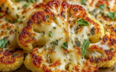 Pieczone steki z kalafiora z mozzarellą Składniki: 1 duży kalafior 150 g mozzarelli (startej) 3 łyżki oliwy z oliwek 2…