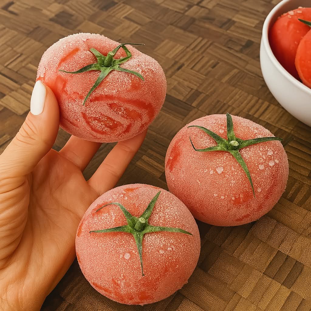 2 Mrożone: Umieść kawałki pomidorów w woreczku nadającym się do zamrażania. Szczelnie zamknij i włóż do zamrażarki.