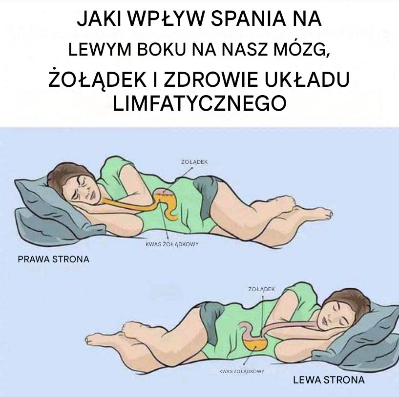 Wpływ pozycji podczas snu na zdrowie mózgu: spanie na lewym boku wspiera naturalny proces oczyszczania mózgu podczas snu poprzez układ glejfatyczny, co może minimalizować nagromadzenie toksyn i obniżać ryzyko chorób neurodegeneracyjnych, takich jak choroba Alzheimera.