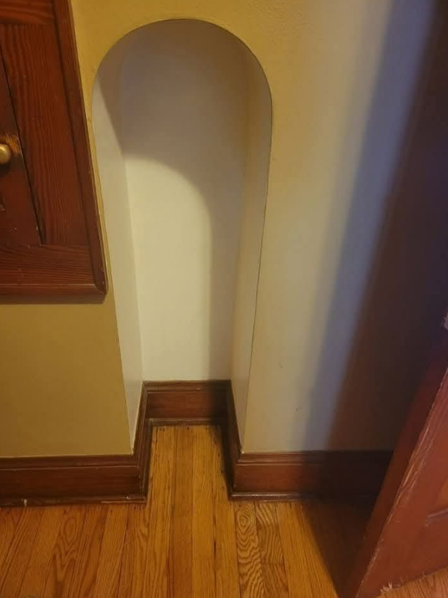 Kiedy kilka lat temu przeprowadziłem się do mojego domu z lat 40. XX wieku, zauważyłem w korytarzu ten dziwny mały zakątek. Nie był zbyt głęboki, miał może około metra wysokości i spiczasty szczyt. Wpatrywałem się w niego przez całe pięć minut, myśląc: